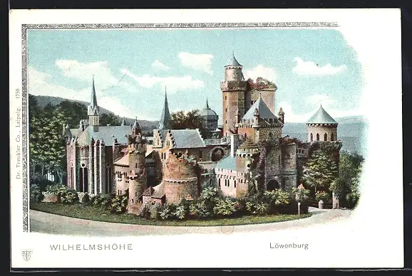 Lithographie Wilhelmshöhe, Blick auf Löwenburg