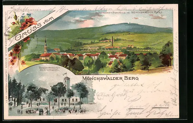 Lithographie Wilthen, Gasthof Mönchswalder Berg
