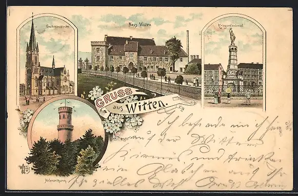 Lithographie Witten, Haus Witten, Gedächtniskirche, Helenenthurm