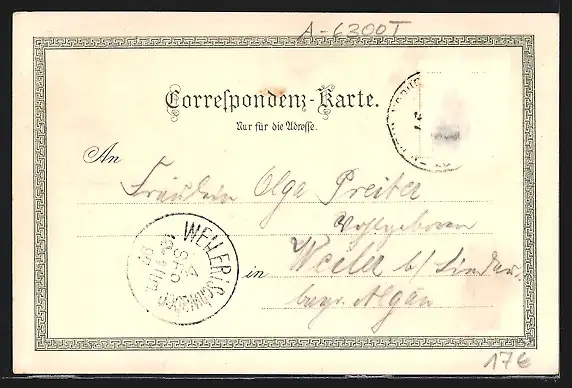gelaufen 1897, Briefmarke entfernt, rückseitig Oberflächenschaden, Eckknick re. oben, guter Zustand