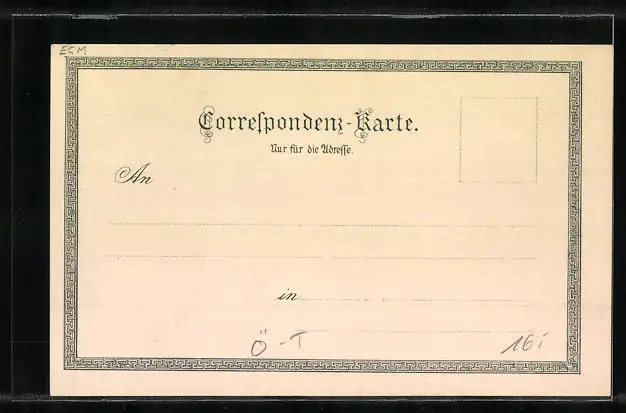 Personenbezogene Daten auf der Rückseite der Karte wurden durch blauen Textmarker unkenntlich gemacht. Die blauen Stellen sind auf die Vorderseite durchgeweicht und wirken sich negativ auf das Postkartenfoto aus