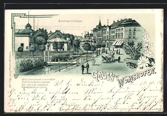 Lithographie Wörishofen, Bachstrasse mit Kurhaus