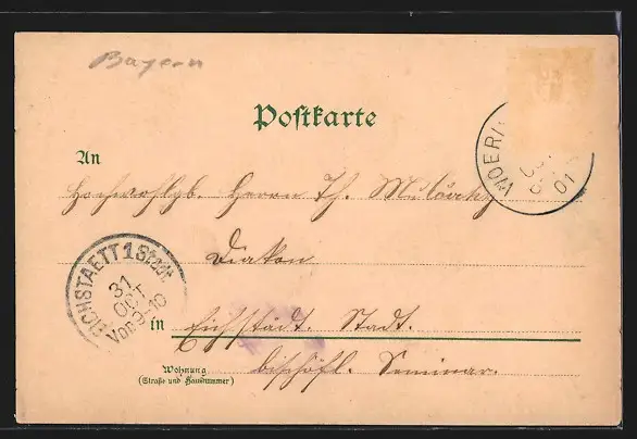 gelaufen 1901, Briefmarke entfernt, guter Zustand