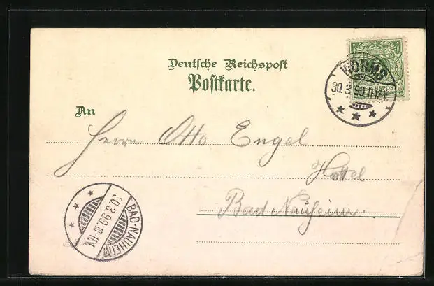 gelaufen 1899, Eckknick unten links, guter Zustand