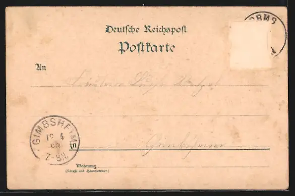 gelaufen 1898, Briefmarke entfernt, rückseitig Oberflächenschaden, guter Zustand