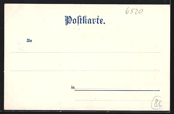 Personenbezogene Daten auf der Rückseite der Karte wurden durch blauen Textmarker unkenntlich gemacht. Die blauen Stellen sind auf die Vorderseite durchgeweicht und wirken sich negativ auf das Postkartenfoto aus