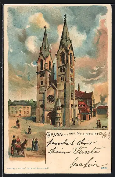 Lithographie Wr.-Neustadt, Partie an der Kirche