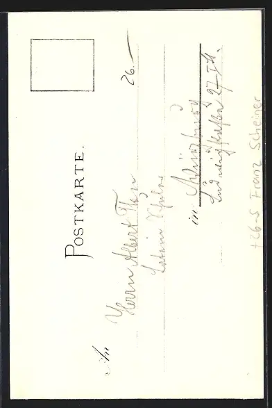Personenbezogene Daten auf der Rückseite der Karte wurden durch blauen Textmarker unkenntlich gemacht. Die blauen Stellen sind auf die Vorderseite durchgeweicht und wirken sich negativ auf das Postkartenfoto aus