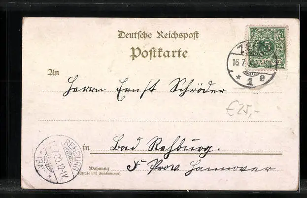 gelaufen 1900, Stempeldurchbruch, Eckknick unten re., guter Zustand
