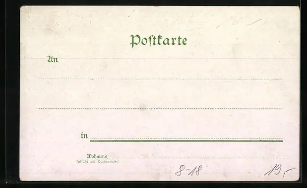 Personenbezogene Daten auf der Rückseite der Karte wurden durch blauen Textmarker unkenntlich gemacht. Die blauen Stellen sind auf die Vorderseite durchgeweicht und wirken sich negativ auf das Postkartenfoto aus