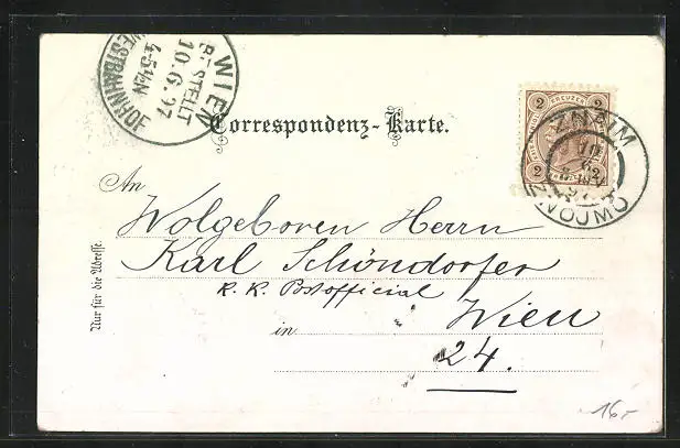gelaufen 1897, Eckknick oben re., guter Zustand