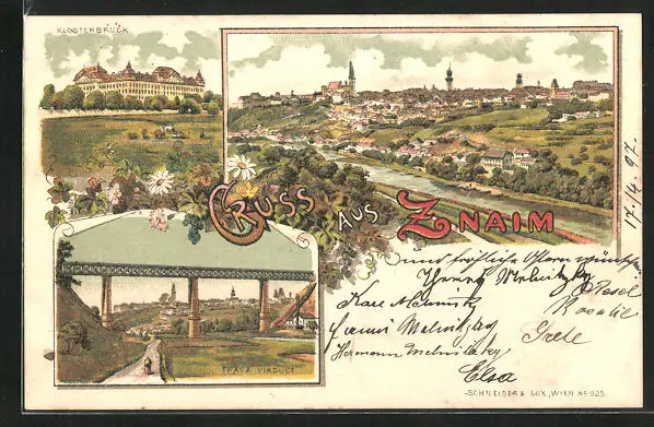 Lithographie Znaim, Teilansicht, Klosterbruck, Thaya Viaduct