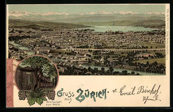 Lithographie Zürich, Gasthaus zur Weid, Teilansicht