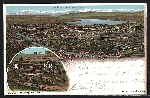Lithographie Zürich, Restaurant Die Waid, Totalansicht