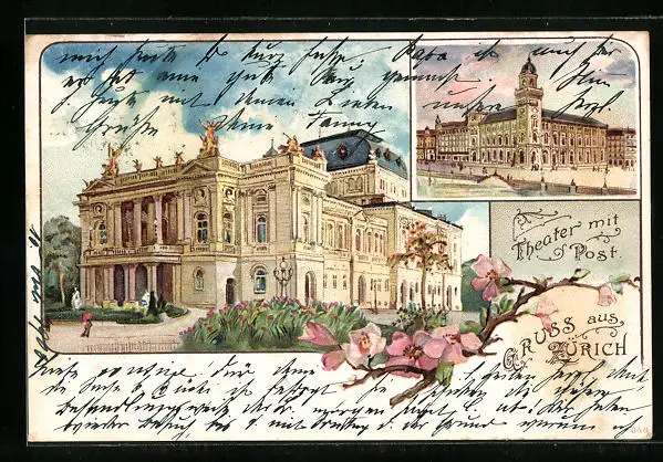 Lithographie Zürich, Theater mit Post
