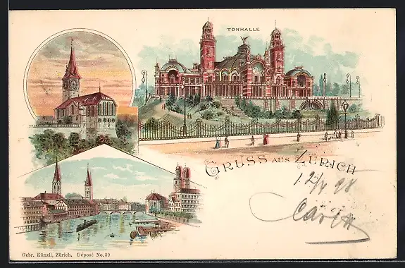 Lithographie Zürich, Tonhalle, Limmatpartie