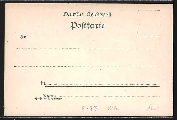 Personenbezogene Daten auf der Rückseite der Karte wurden durch blauen Textmarker unkenntlich gemacht. Die blauen Stellen sind auf die Vorderseite durchgeweicht und wirken sich negativ auf das Postkartenfoto aus
