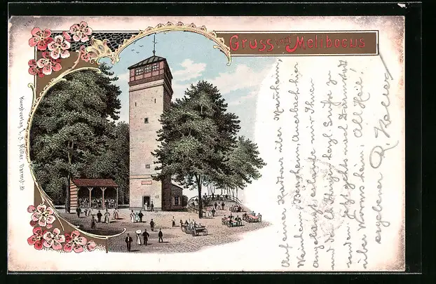 Lithographie Zwingenberg, Gasthaus Melibocus