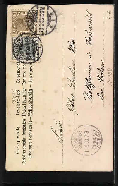 gelaufen 1903, Eckknick re. oben, Stempelspur, guter Zustand