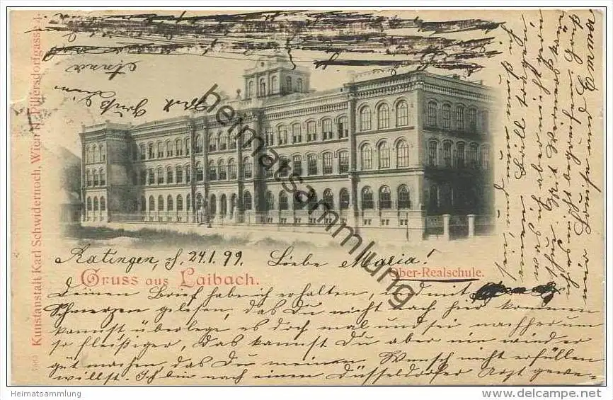Ljubljana - Laibach - Ober-Realschule - Verlag Karl Schwiedernoch Wien (E13596) gel. 1899