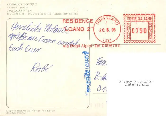 Loano Residence Loano 2 Ristorante Swimming Pool Loano postalisch gelaufen 1995 Erhaltung siehe scans [FriedD77] Frierer