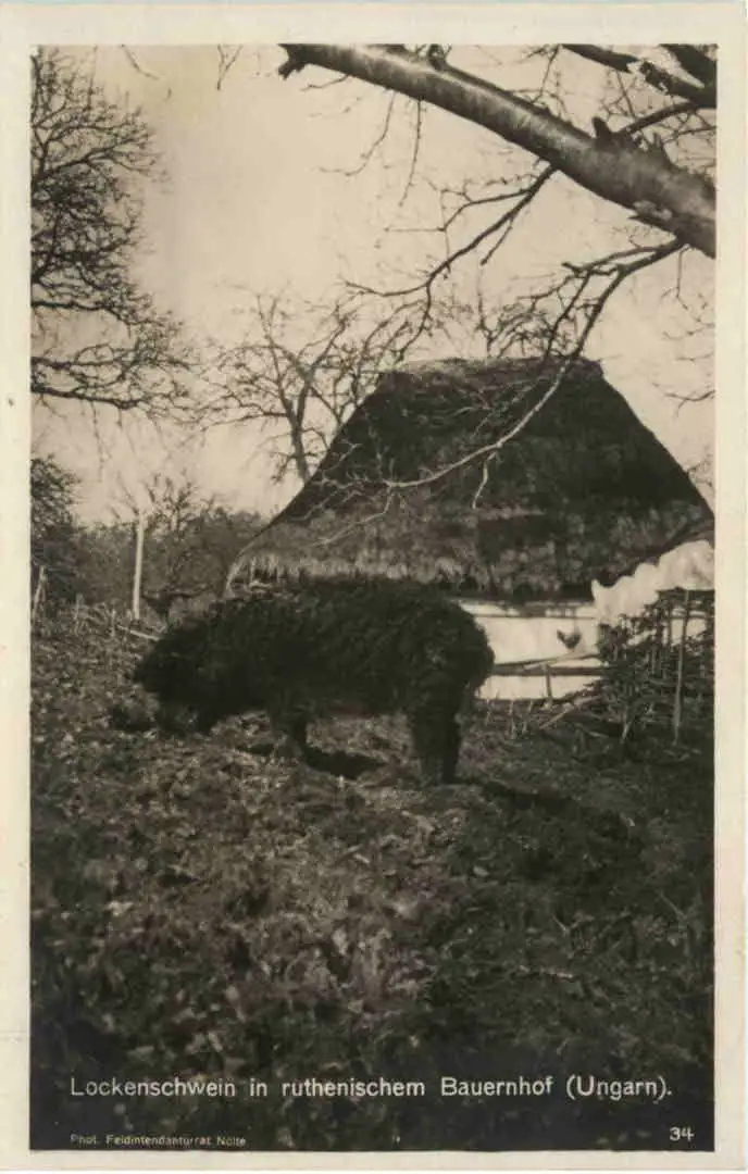 Lockenschwein in ruthenischem Bauernhof - Hungary -655248