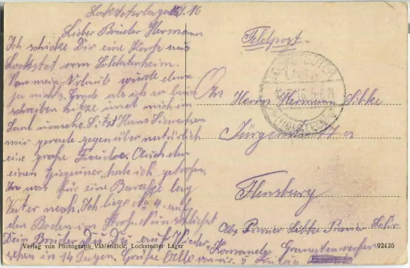 Lockstedter Lager - Soldatenheim - Verlag Vahlendick Lockstedter Lager - Feldpost - Gebrauchsspuren (E35269) gel. 1916