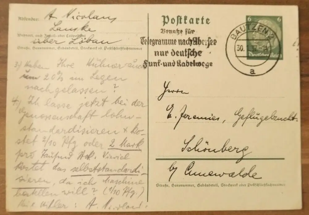 Löbau Sachsen Brief Postkarte 1937 Deutsches Reich