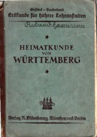 starke Gebrauchsspuren, der Einband ist fleckig, die Seiten sind gebräunt, die Einband- und Seitenkanten sind bestoßen, Eigentumseintrag, aus dem Inhalt: Erweiterte Heimatkunde - Heimatkunde von Württemberg - Die südwestdeutschen Landschaften Beschreibung vom Antiquariat Ardelt 2d6 Antiquariat Ardelt
