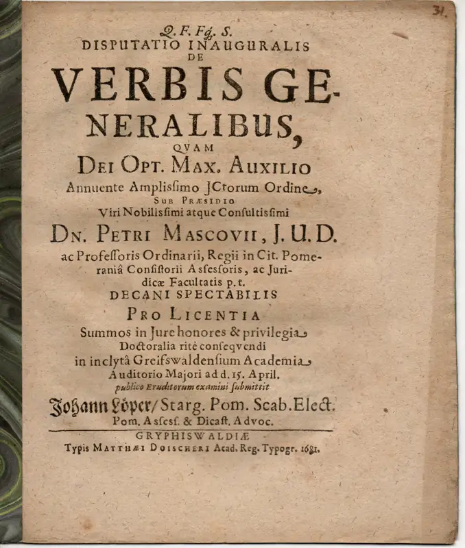 Löper, Johann: aus Pommern: De verbis generalibus (Über generelle Wörter).