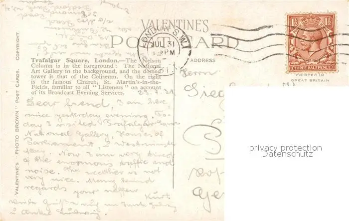 London Trafalgar Square London postalisch gelaufen 1931 Erhaltung siehe scans [KathaD81] Kathoren