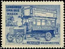 Mit Metzeler - Massivreifen. Blaugrau, weiß, Bus, Automobil, Auto, Größe/Zustand: 3x4 , guter Zustand, Original alte Reklamemarke die seinerzeit für die Werbung benutzt wurde