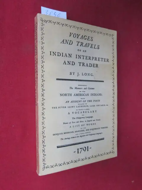 Describing the manners and customs of the North American Indians; With an account of the posts situated on the river Saint Laurence, Lake Ontario; & c. to which is added, A vocabulary of the Chippeway Language. Names of furs and skins, in English and French. A list of words in the Iroqois, Mohegan, Shawanee, and Esquimeaux tongues, and a table, shewing the analogy between the Algonkin and Chippeway Languages. Originally published in 1791 in London, England by J. Long. ZUSTAND: Gutes Exemplar, papierbedingt ger. gebräunt. / Cover browned, good condition.