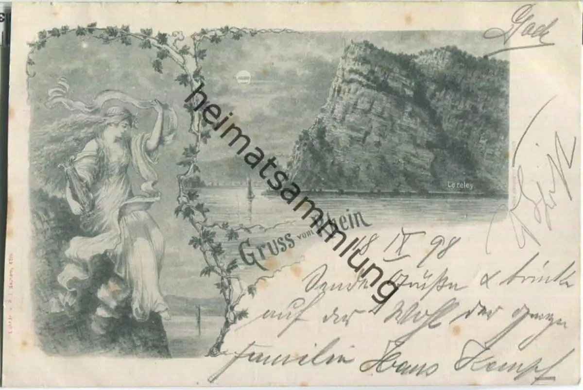 Loreley - Gruss vom Rhein - Gebrauchsspuren (G46682) gel. 1898