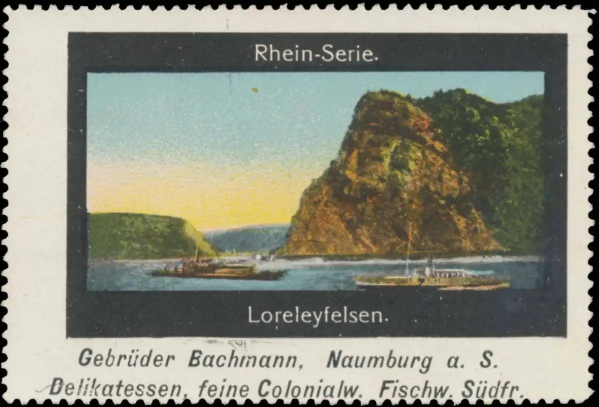 Rhein-Serie, Loreley, Delikatessen, feine Kolonialwaren, Fischwaren, Südfrüchte, Größe/Zustand: 4x7 , guter Zustand, Original alte Reklamemarke die seinerzeit für die Werbung benutzt wurde