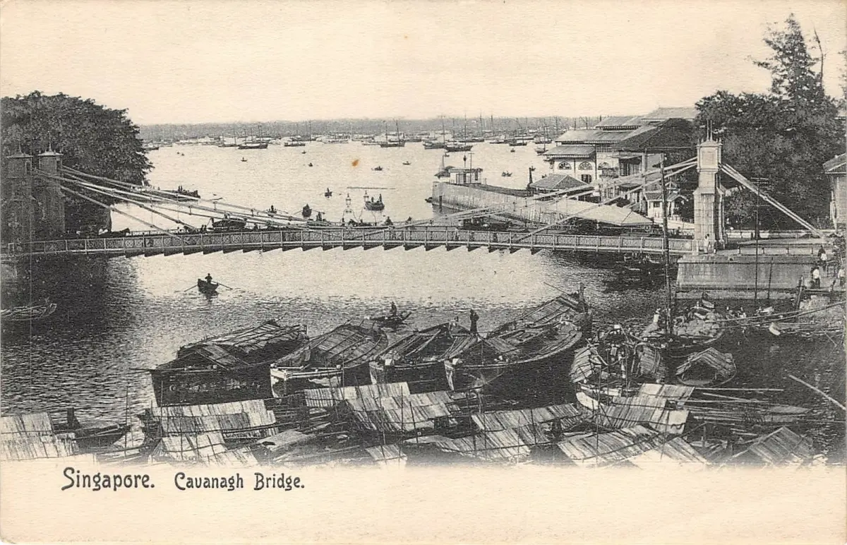 AK Singapore, Cavanagh Bridge, Blick nach der Brücke