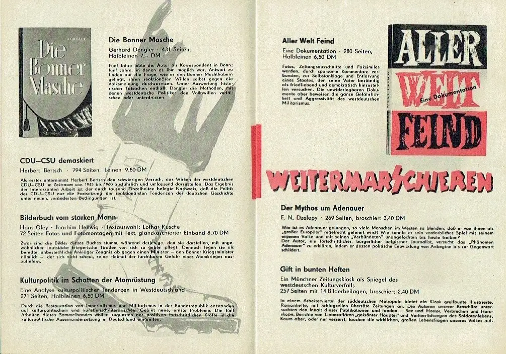 sehr guter Zustand, geringe Gebrauchs- und Alterungsspuren, kleiner Katalog mit den damaligen Buchangeboten, deren Kurzbeschreibung und Preise sowie unbenutzten Bestellkarten, Softcover, ungebunden, ca. 13 x 18, 32 Seiten mit zahlreichen Bildern