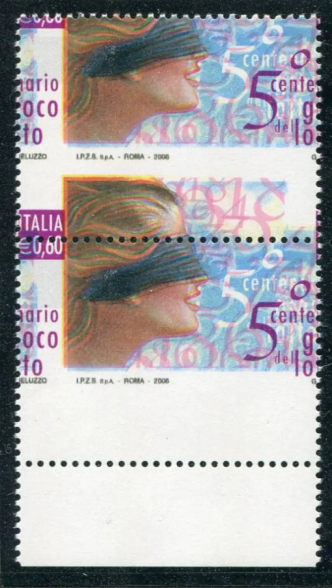 Lottospiel Sorte in beide Richtungen verschobene Verzahnung Vollgummi - Lotspiel 0,60 Nr. 2932 vertikales Paar b. von f. mit stark in beide Richtungen verschobener Verzahnung - auffällig, nicht katalogisiert Nr. 684/6