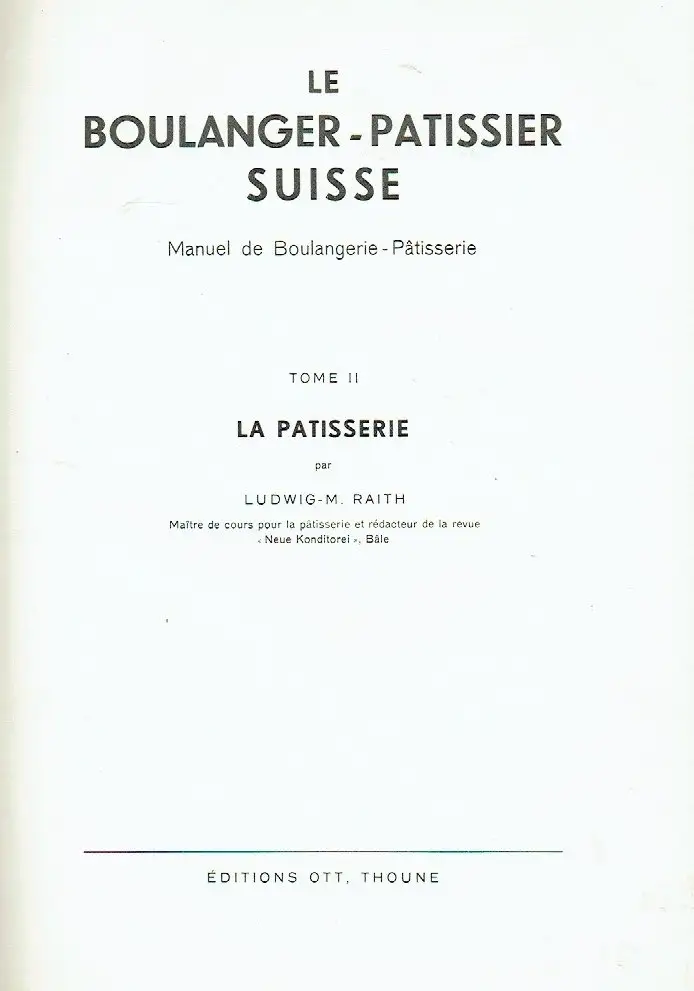 guter Zustand, geringe Gebrauchs- und Alterungsspuren: Leinen an Einbandecken und -kanten teils abgewetzt - Rückenoberkante zerfasert - vorderes Rückengelenk oben ca. 3 cm gerissen, das hintere ca. 2 cm - Vorsätze teils minimal fleckig - Seiten sauber und ordentlich, sehr selten minimal fleckig - Seitenschnitt etwas stockfleckig, Généralités - De la pâtisserie: ses origines - La boulangerie-pâtisserie - Des exigences particulières inhérentes à l'exercice du métier de pâtissier - Les matières - Matières premières - Fruits des régions méridionales - Conserves de fruits - Les produits semi-fabriqués - Glaçage - Liants et gélifiants - Epices - Aromes artificiels et colorants - Liqueurs et spiritueux - Acides - Levures artificielles - Matières pour décorer et garnir - Pâtisserie - Pâtes sablées et pâtes sucrées - La pâte feuilletée - Petits gâteaux en pâte feuilletée - Les pâtes à la levure (voir tome I) - Masses    - Pâtisseries cuites dans la graisse - Les petits gâteaux à 20 et 25 centimes (voir aussi planches en couleurs nos 5, 6, 7) - Recettes de pièces à 25 centimes - Petits gâteaux secs à 10 et 15 centimes (voir aussi planche en couleurs no 4) - Assortiments de petits-fours et de petits gâteaux divers pour le thé (voir aussi planches en couleurs nos 8, 9 et 10) - Biscuits secs pour la vente en boîtes - Gâteaux divers - Cakes et tôt-faits - Tourtes (voir aussi planches en couleurs nos 14, 15, 16, 17) - Vacherins, crème fouettée et entremets à la crème (voir aussi planches en couleurs nos 12, 13, 18, 19) - Les glaces (voir aussi planches en couleurs nos 21, 22) - Généralités sur le commerce des desserts glacés - Recettes pour glaces - Coupes glacées - Boissons glacées pour le tea-room - Boissons frappées - Pâtés divers garnis de viande, de poisson ou de gibier - Pâtisseries salées et au fromage - Le décor - La peinture au cacao liquide - Confiserie - La cuisson du sucre - Bonbons en sucre - Le travail du sucre et les pièces montées - La couverture et son traitement - Utilisation de la couverture - Le moulage avec de la couverture - Bonbons au chocolat (voir aussi planches en couleurs nos 23, 24) - Recettes pour bonbons au chocolat - Les bonbons à liqueur - Divers - Quelques procédés et tours de main - Ce qu'il ne faut pas faire - Registre commercial, Leinen, ca. 19,5 x 26,5, 256 Seiten mit ca. 100 Bildern und 15 Farbtafeln (Tafeln 9-24, 1-8 sind in Band 1)