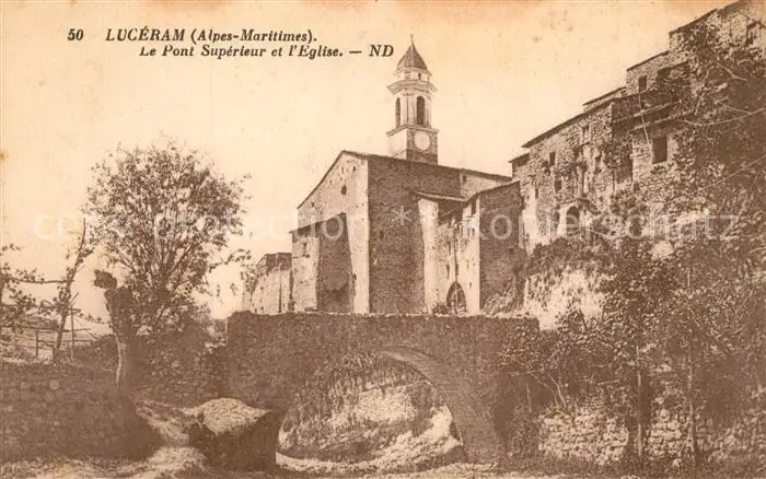 Luceram Le Pont Superieur et l'Eglise Luceram postalisch gelaufen 1914 Erhaltung siehe scans [WerneD78] WernPID7