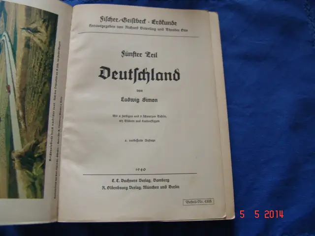 Ich verkaufe das seltene Buch von Ludwig Simon " Erdkunde - 5. Teil Deutschland " mit 2 farbigen und 8 schwarzen Tafeln, 165 Bildern und Kartenskizzen im Text.