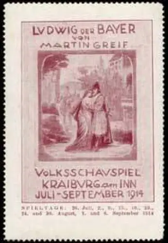 Volksschauspiel von Martin Greif, Größe/Zustand: 8x5 , guter Zustand, Original alte Reklamemarke die seinerzeit für die Werbung benutzt wurde