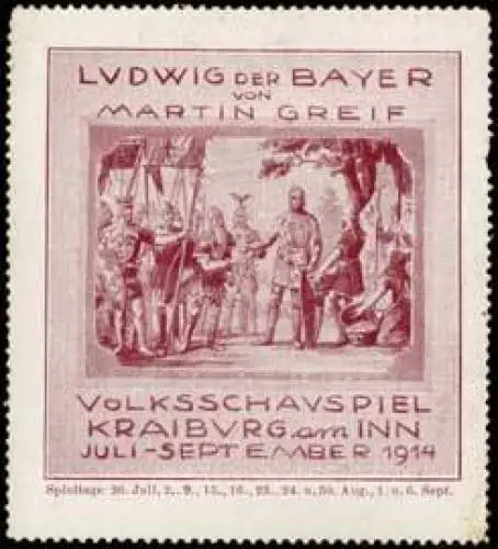 Volksschauspiel von Martin Greif, Größe/Zustand: 7x7 , guter Zustand, Original alte Reklamemarke die seinerzeit für die Werbung benutzt wurde