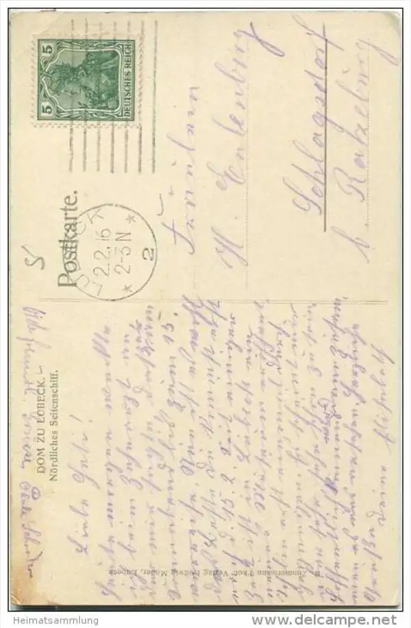 Lübeck - Dom - nördliches Seitenschiff - Verlag Ludwig Möller Lübeck - Ecken teilweise bestossen (G34091) gel. 1916
