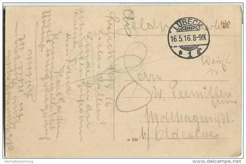 Lübeck - Geibelplatz - Geibeldenkmal - Strassenbahn - Feldpost - Gebrauchsspuren (G32495) gel. 1916