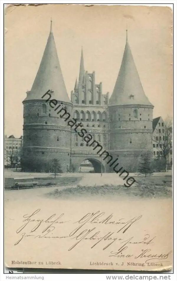 Lübeck - Holstentor - Verlag J. Nöhring Lübeck - Randmängel (G32533) gel. 1899