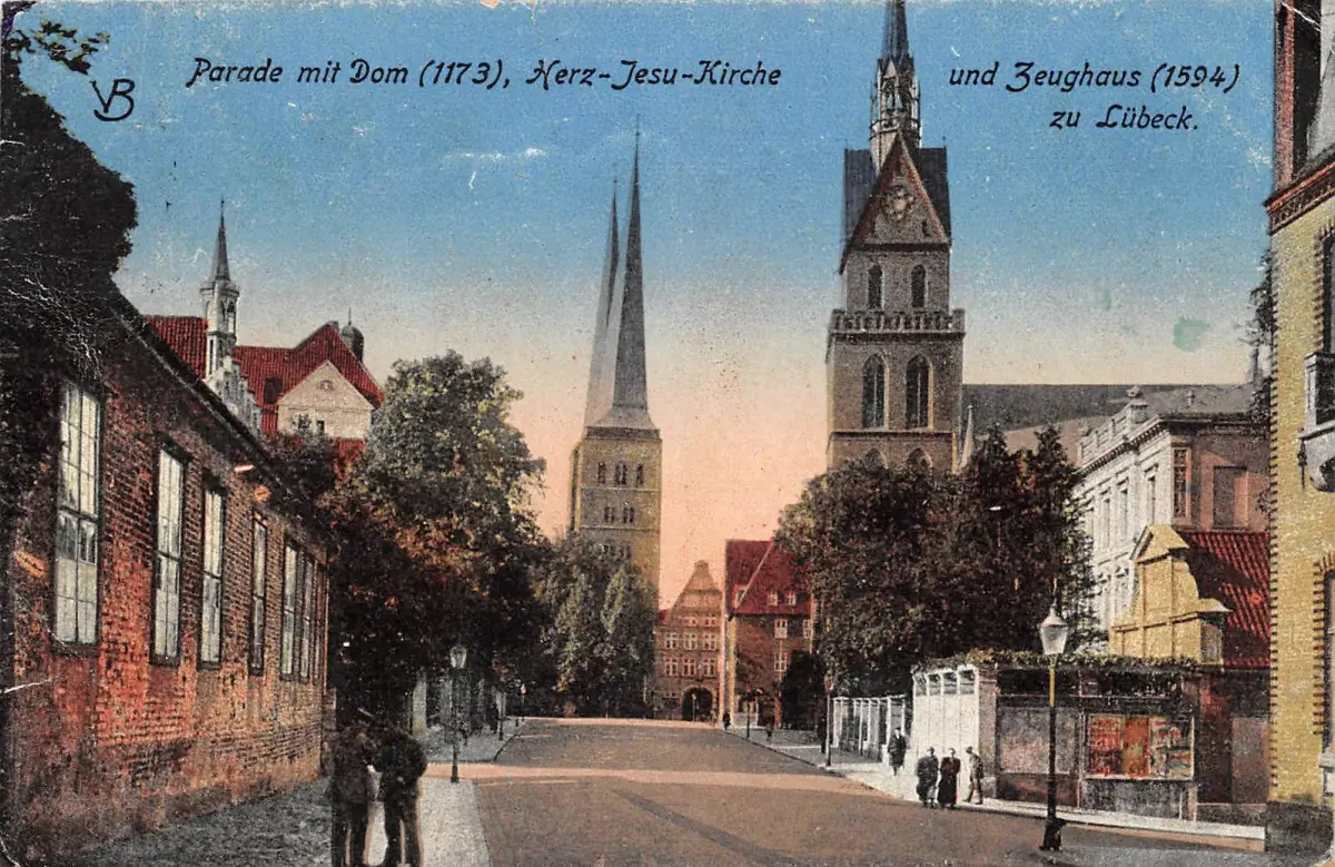 Lübeck Parade mit Dom, Herz-Jesu-Kirche und Zeughaus gl 175.876
