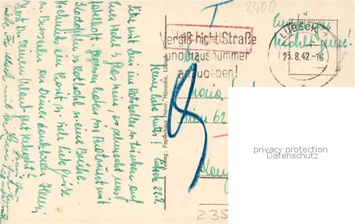 Luebeck Ratsweinkeller Urkunde Siegel Luebeck postalisch gelaufen 1942 Erhaltung siehe scans [FriedD77] Frierer