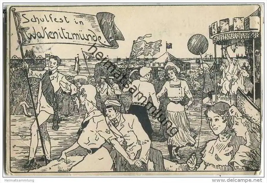 Lübeck - Schulfest in Wakenitzmünde - Eckknick unten links - Gebrauchsspuren (G32795) gel. 1909