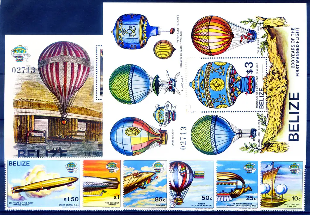 Luftfahrt. Erste Bälle und Luftschiffe. Serie + 2 Zettel. Yvert 2016: 636/641 + BF 47/48 (**) - Euro 66,00.
